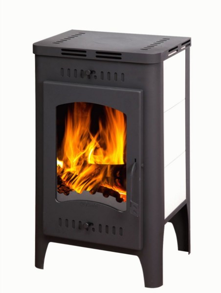 Через стекло в дверце печи-камина удобно присматривать за огнем, да и просто любоваться затейливыми играми пламени. Огнеупорное стекло, а точнее, стеклокерамика легко выдерживает температуру до 750°C. Несмотря на то, что материал прочнее обычного оконного стекла, рекомендуется соблюдать с ним такую же осторожность, особенно при транспортировке и установке - стекло может треснуть или разбиться. В этой печи использовано прямое остекление.