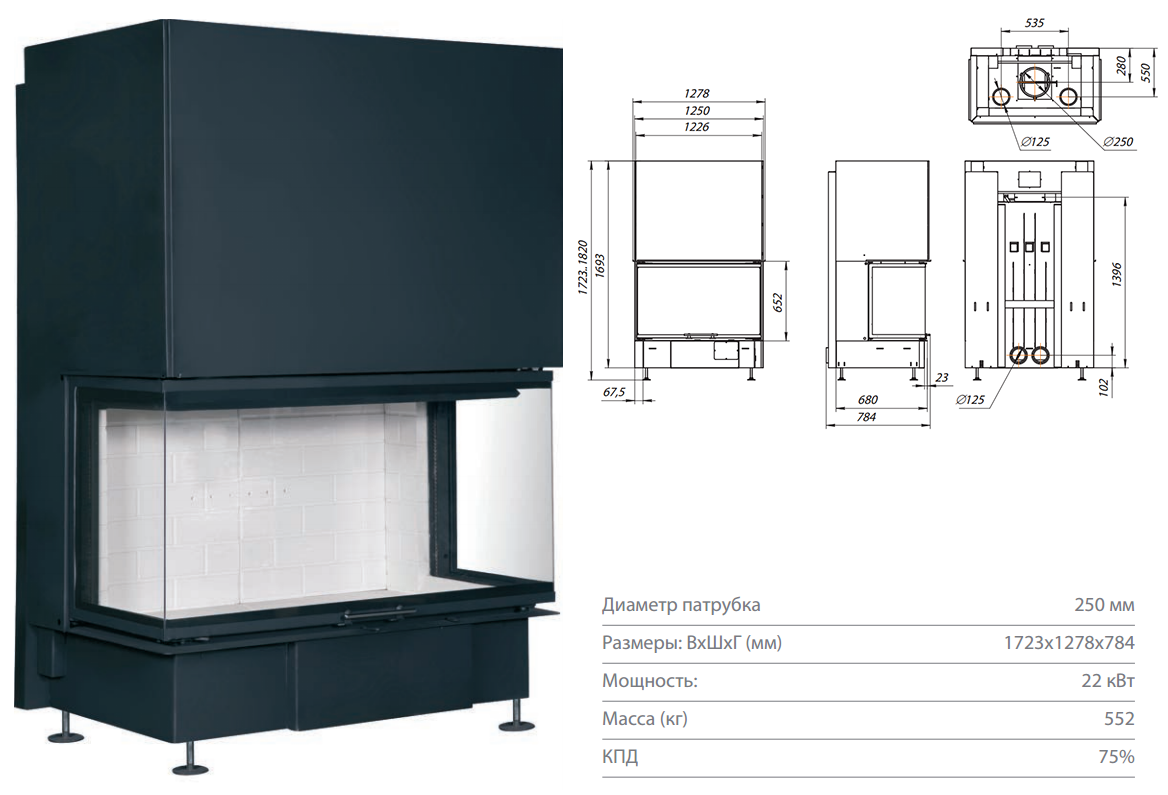 Ребра жесткости по всему корпусу топки и встроенные в дымосборник тепловые каналы позволяют снимать больше тепла и отдавать его в помещение путем конвекции.