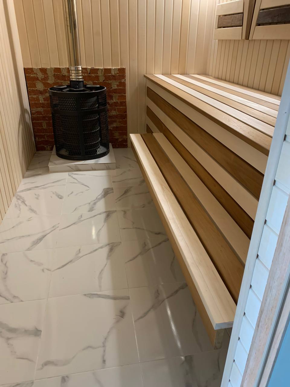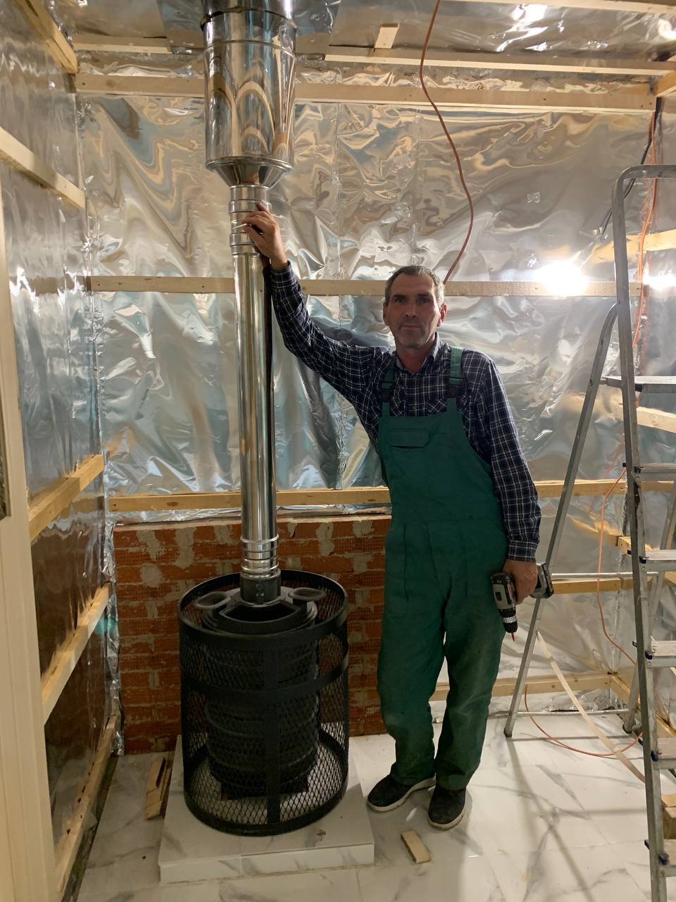 Монтаж банной GFS с установка дымохода, кладка портала