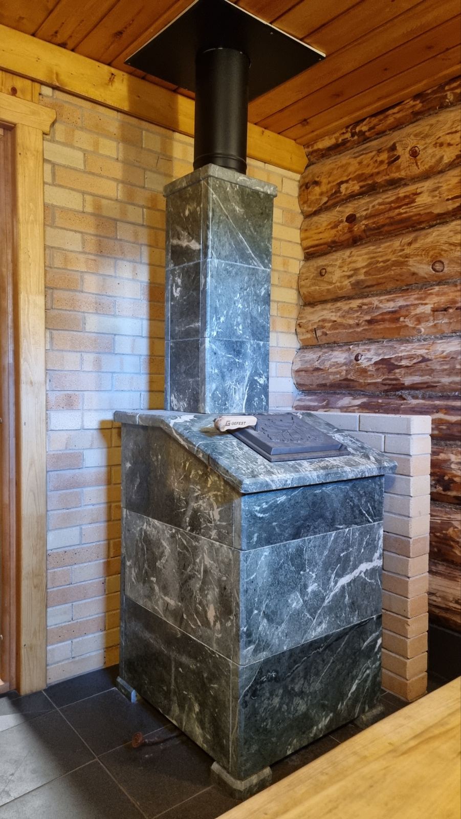 Монтаж чугунной банной печи Гефест ПБ-25 М/ЗК с облицовкой Президент 980/40 камнем Змеевик. Сборка облицовки и установка дымохода Теплов и Сухов black.